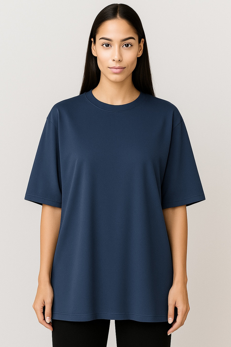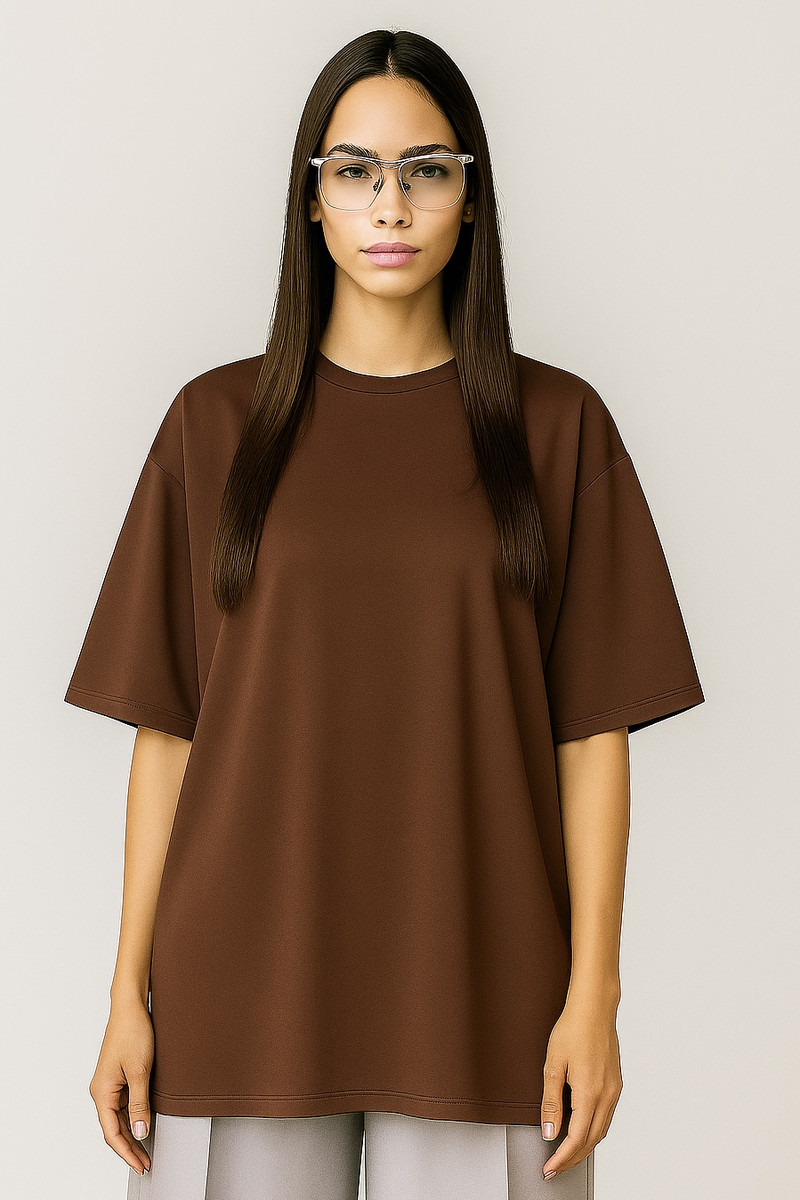 Однотонная футболка свободного кроя с удлиненными рукавами и спущенным плечом.